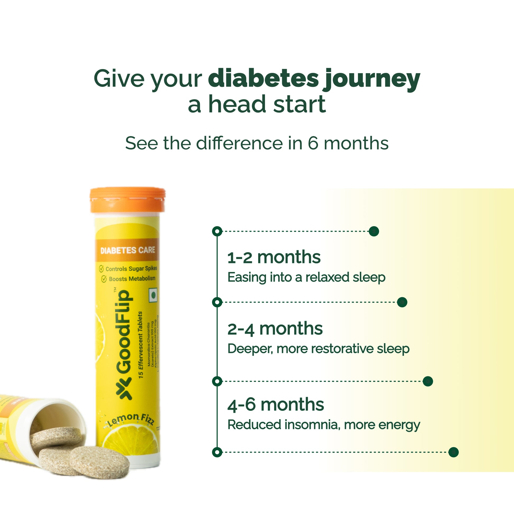 Over 100 million Indians are in the pre-diabetic stage. Nearly 90% of type 2 diabetes cases can be delayed or prevented with the right habits and nutrition. The Diabetes Care Supplement is a core part of the larger GoodFlip Care Program, supporting blood sugar control and better outcomes, one step at a time.